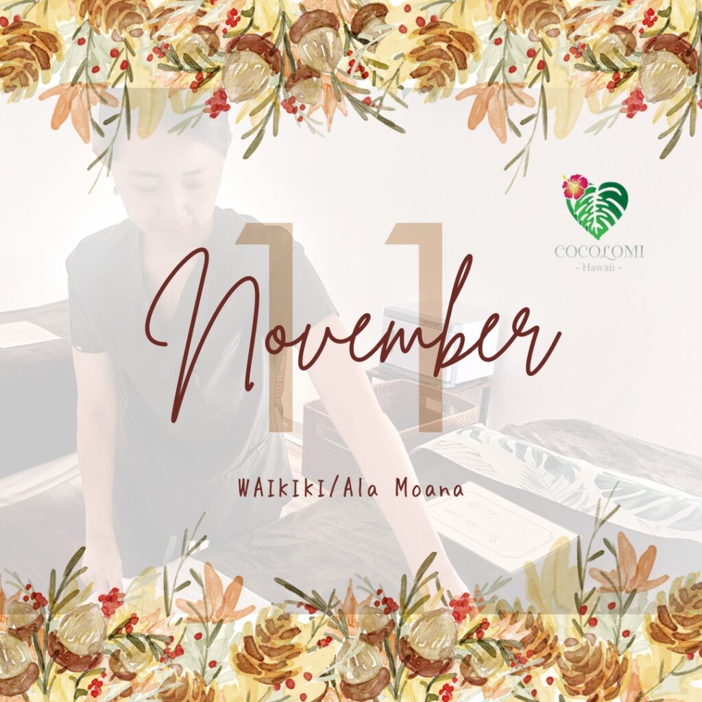 As the breeze in Hawaii turns a little softer and the sun sets a bit earlier, November arrives quietly with the spirit of gratitude. At COCOLOMI Massage, we welcome this peaceful month by helping our guests slow down, recharge, and reconnect with themselves.In Hawaii, November is a beautiful reminder to pause and give thanks — for the people we meet, the experiences we have, and the small moments that make life gentle. At COCOLOMI, our goal is to create a space where your mind and body can find balance again.