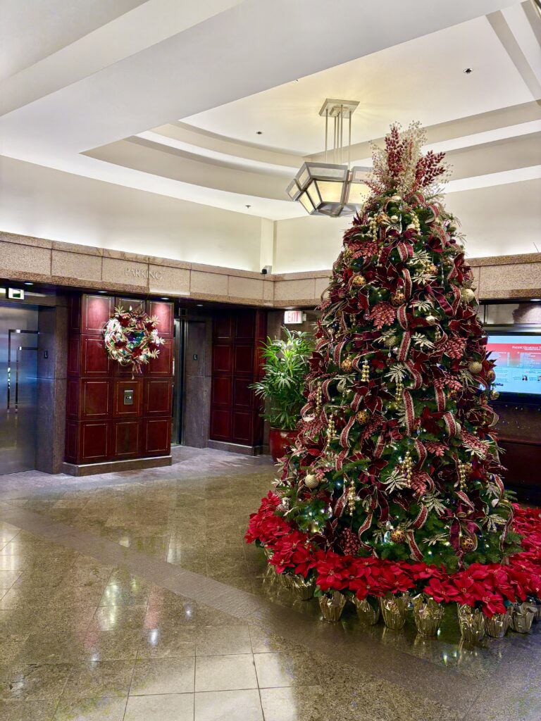 こちらはアラモアナ店のあるパシフィックガーディアンタワーに飾られたツリー。