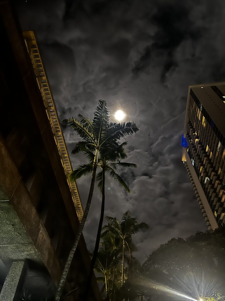 海辺からでも街中からでも、ハワイの夜空に浮かぶ満月は見る人すべてを癒します。